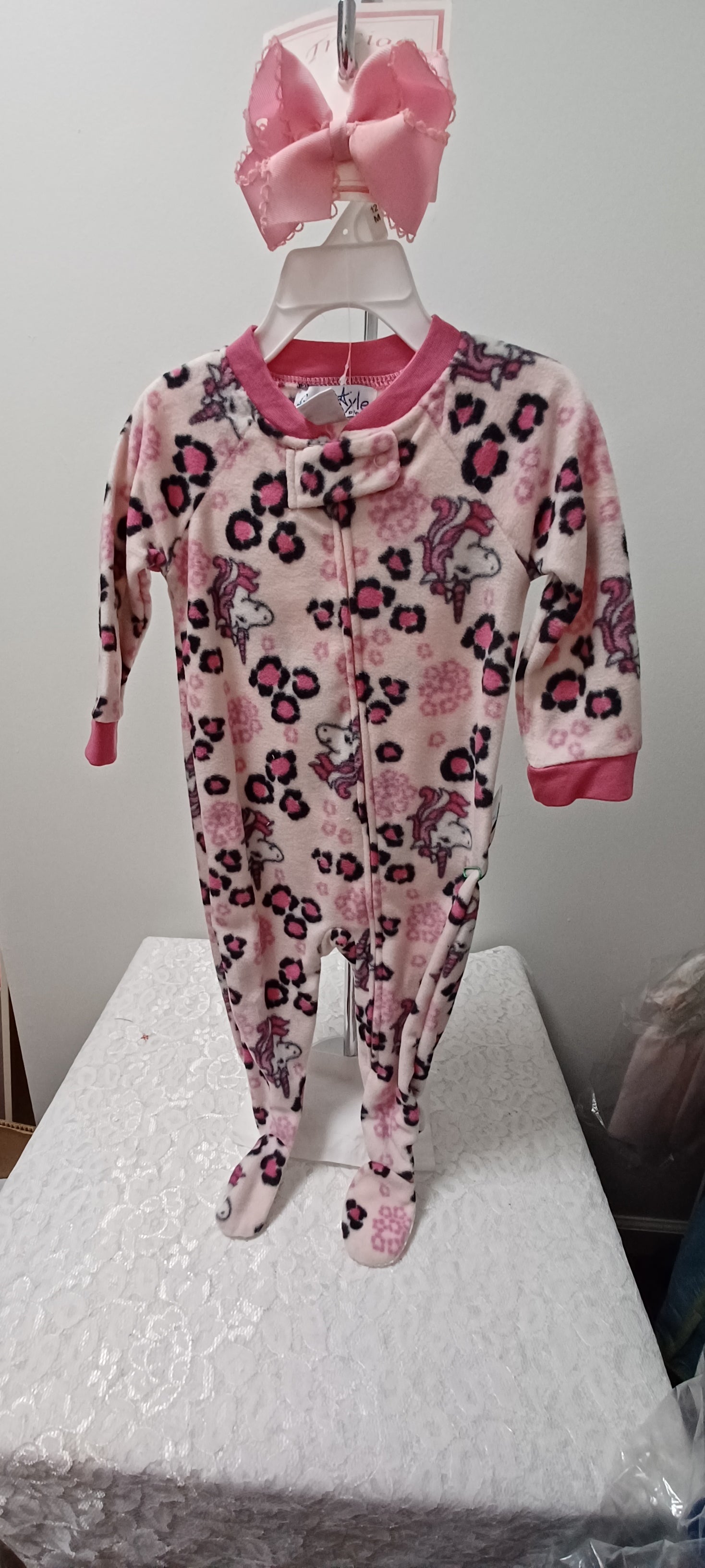 Girls 1 Pc Pink Unicorn Print Sleeper With Feet