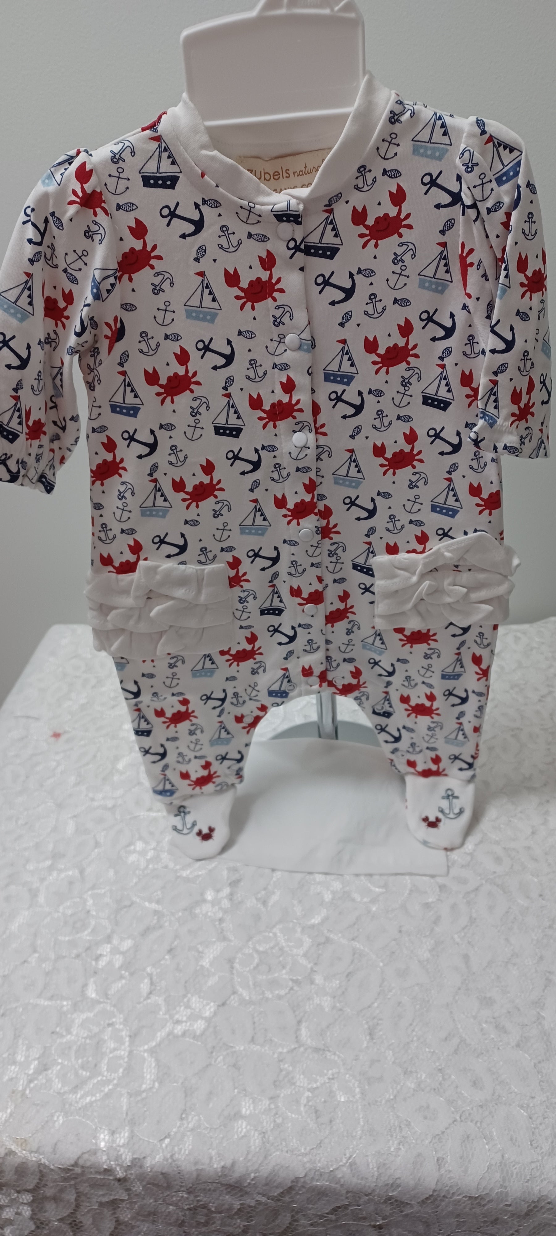 Girls Nautical Print 1pc With Feet and Ruffles