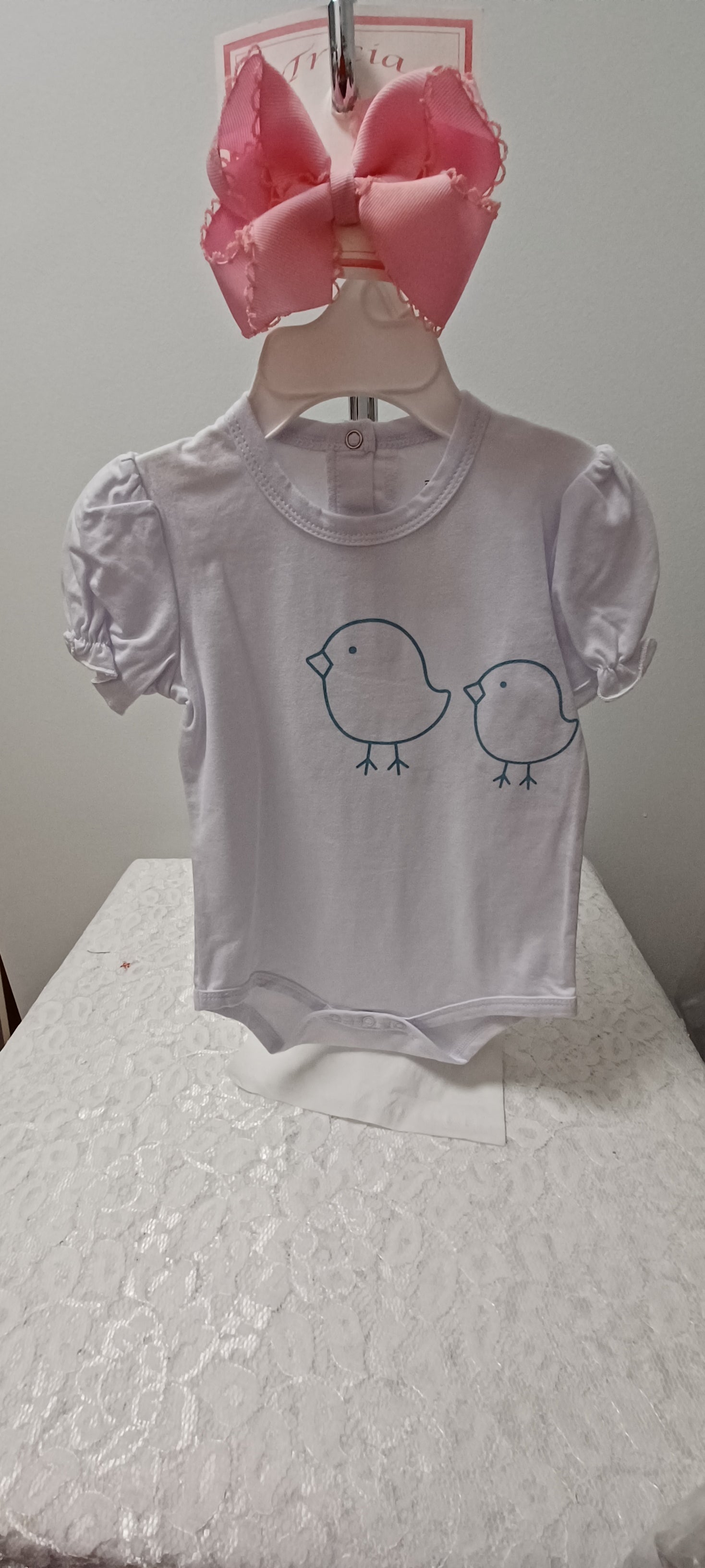 Girls White Knit Bubble With Blue Birds On The Front And Back
