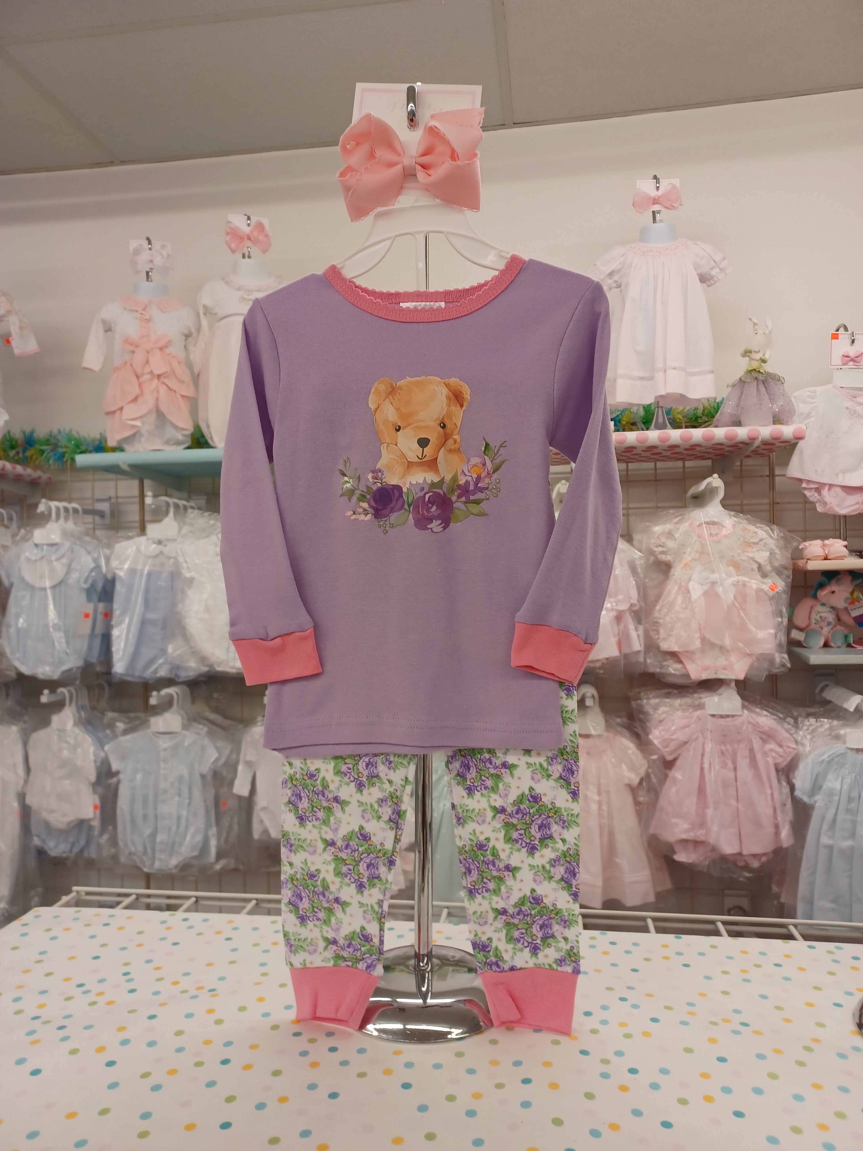 Lavender Bear and Flower Pajamas