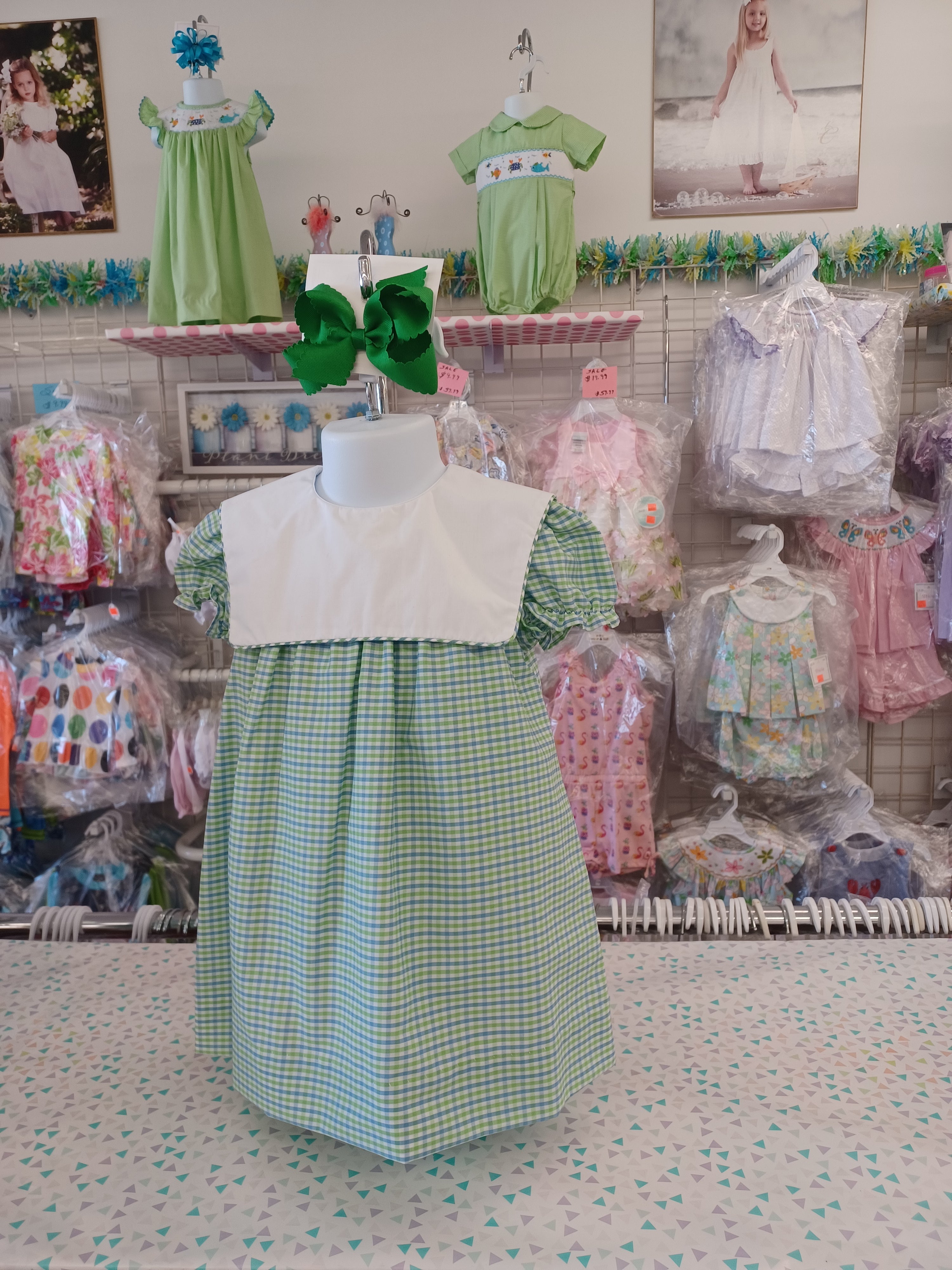 Girls Green and Blue Mongrammable Dress
